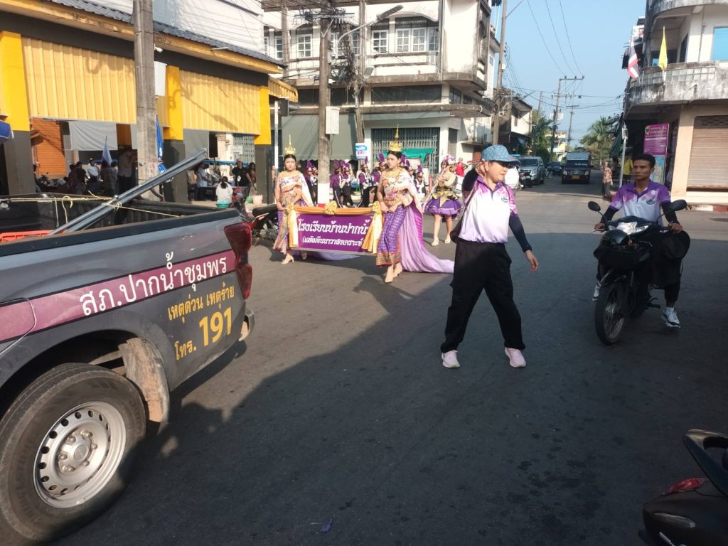 อำนวยความสะดวกด้านจราจร ขบวนพาเหรดนักกีฬา โรงเรียนบ้านปากน้ำเผดิมจีนนาวาสงเคราะห์ “ปากน้ำเกมส์” ปั้ม ปตท.-โรงเรียนบ้านปากน้ำ