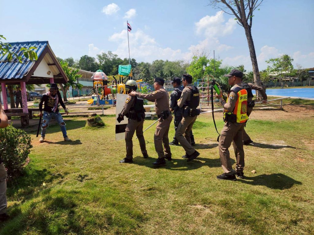 วันที่ 26 ก.พ 2569 เวลา 13.00 น. ภายใต้การอำนวยการของ พ.ต.อ.สมพล บูรณเทศ ผกก.สภ.ปากน้ำชุมพร พ.ต.ท.สมชาย มากอำไพ รอง ผกก.ป.สภ.ปากน้ำชุมพร ,พ.ต.ท.ภัทศาสน์ บัวแก้ว รอง ผกก.สส.สภ.ปากน้ำชุมพร ,พ.ต.ท.อิทธิ พินิจกุล สวป.สภ.ปากน้ำชุมพร พร้อมด้วย ชุดมวลชนสัมพันธ์ จราจร สายตรวจรถยนต์ สายตรวจตำบลท่ายาง บรรยายให้ความรู้เรื่อง หนี ซ่อน สู้ (Active Shooter) แก่ ครู และนักเรียน โรงเรียนบ้านหัวถนน ต.ปากน้ำ อ.เมือง จ.ชุมพร พร้อมทั้ง ได้บูรณาการร่วมกับ ตำรวจท่องเที่ยวชุมพร,ตำรวจน้ำชุมพร เจ้าหน้าที่กู้ภัยเทศบาลเมืองท่ายาง ร่วมกันซักซ้อมแผนเผชิญกรณีมีคนร้ายคุ้มคลั่งเข้ามาก่อเหตุในโรงเรียน และแผนเหตุกราดยิงในที่สาธารณะ (Active Shooter) หนี ซ่อน สู้ ณ โรงเรียนบ้านหัวถนน ต.ปากน้ำ อ.เมือง จ.ชุมพร โดยก่อนการซ้อมได้มีประชุมวางแผนทำความเข้าใจก่อนการปฏิบัติซ้อมแผนเผชิญเหตุ เพื่อป้องกันการบาดเจ็บจากซักซ้อมแผนดังกล่าว ประกอบด้วย