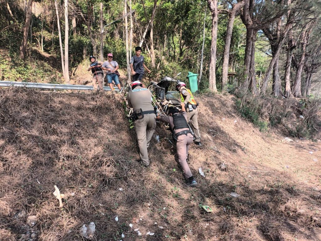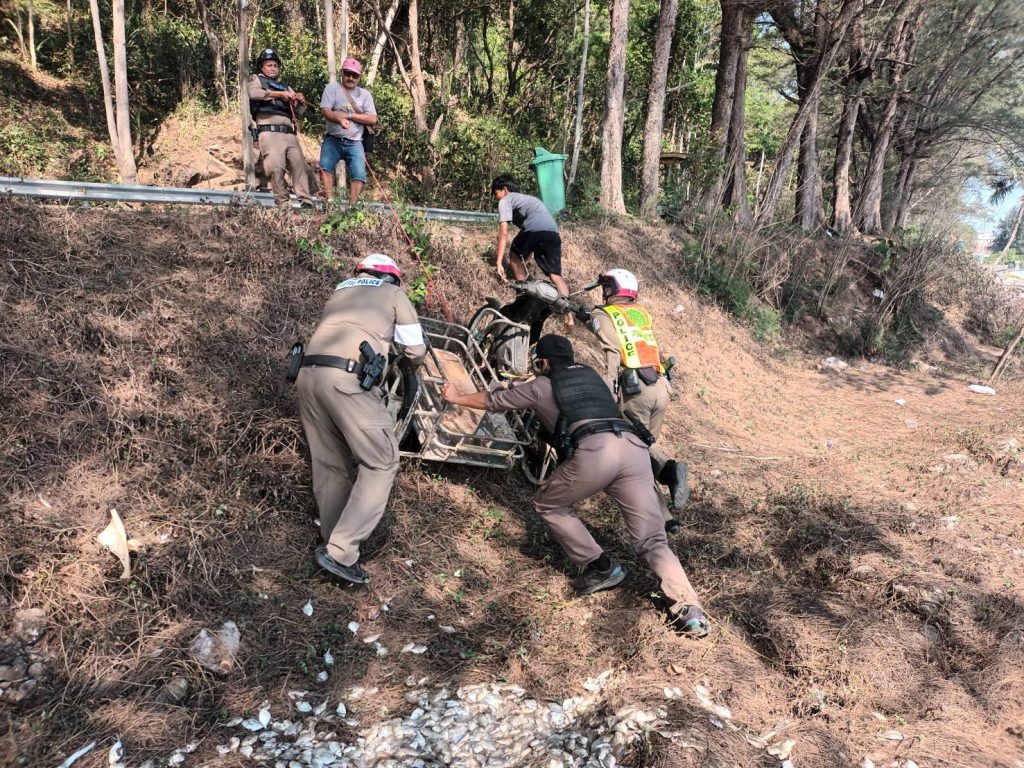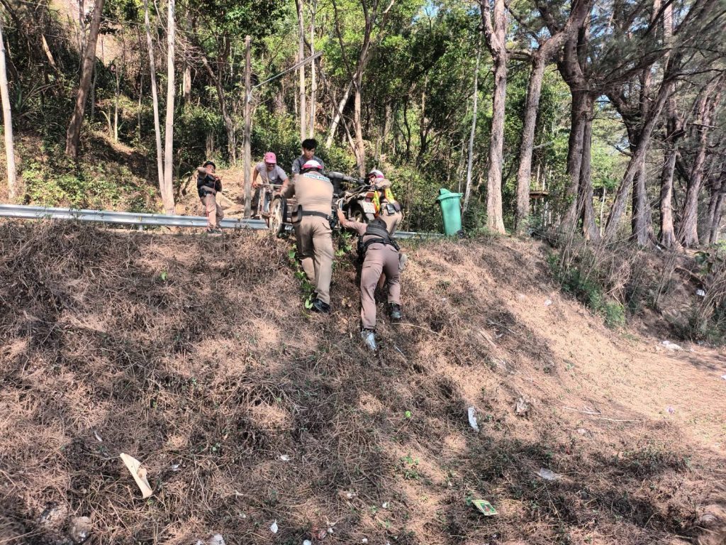 ร.ต.ต.บุญโชติ นาคหกวิค รอง สว.(ป.)สภ.ปากน้ำชุมพร/ร้อยเวร20 พร้อมด้วย สายตรวจจราจร สายตรวจรถจักรยานยนต์ ว.4 เหตุรถจักรยานยนต์สามล้อพ่วงข้างตกลงไปในร่องถนนชายทะเลปากน้ำชุมพร หมู่ที่2 ต.ปากน้ำ อ.เมือง จ.ชุมพร ผู้ขับขี่ได้รับบาดเจ็บเล็กน้อยไม่ประสงค์ไปโรงพยาบาล ได้ให้การช่วยเหลือ ช่วยเข็นรถจักรยานยนต์สามล้อพ่วงข้างขึ้นมาบนถนนเนื่องจากเป็นทางลาดชัน