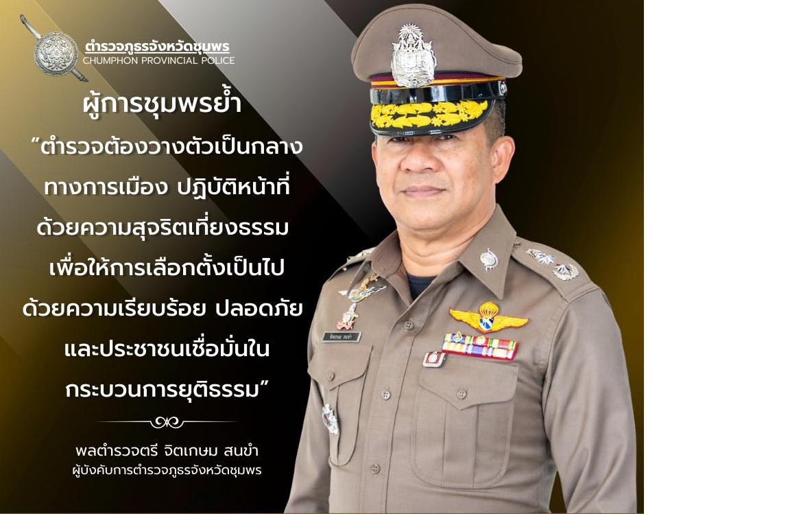 พล.ต.ต.จิตเกษม สนขำ ผบก.ภ.จว.ชุมพร ขานรับนโยบายและข้อสั่งการของผู้บัญชาการตำรวจแห่งชาติ และผู้อำนวยก